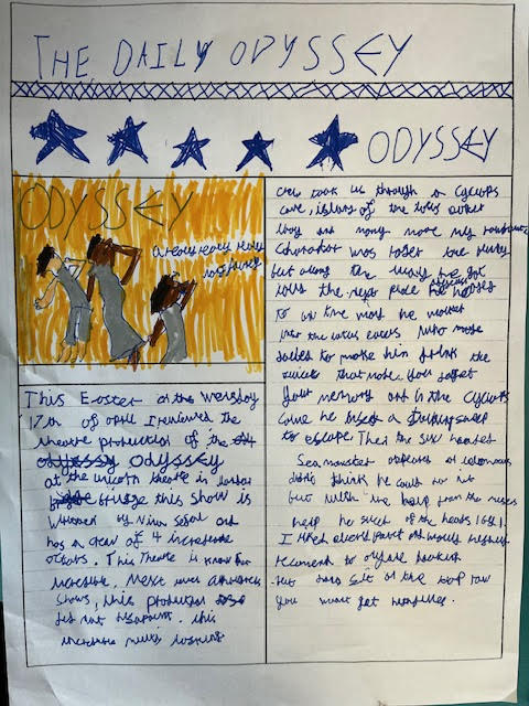In April, Year 5 were lucky enough to go to the Unicorn Theatre to watch the production of The Odyssey. On the Thursday after the play, we all reviewed the show with our own thoughts and opinions. Our theatre critic tells you what we thought of the production.